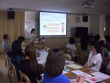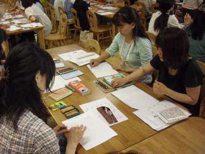 「自分の気持ちを色で描いてみましょう」の演習を取り入れながら研修は進みました。参加した方々はいつのまにか、夢中になって色をぬっていました。自分の気持ちも大切にすることの大切さを学びました。