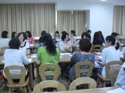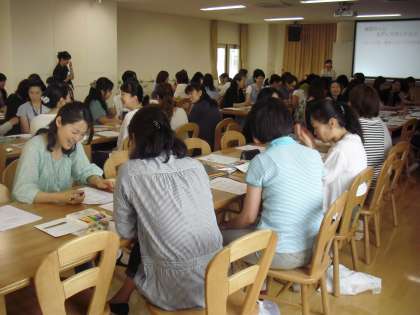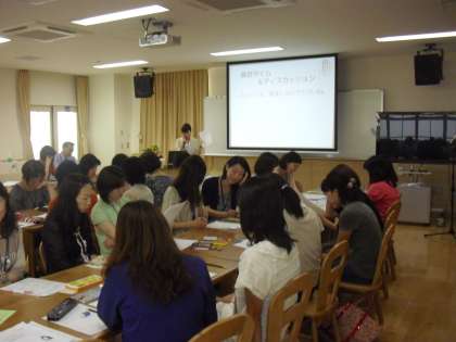 ワークシートに描かれているフェイススケールを選び、その表情になったときの自分の話をします。2人組になって話す人、聞く人になります。いつのまにか時間をオーバーする程、盛り上がりました。子どもたちとのコミュニケーションのヒントをたくさんもらった研修となりました。保護者のみなさま、ありがとうございました。
