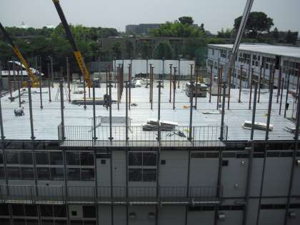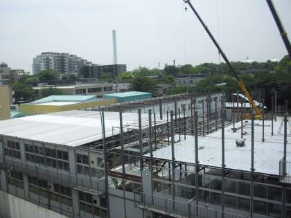 今日の仮設校舎解体工事の様子です。小学校3階部分がきれいに解体されています。資材はリサイクルされるので、種類別に整理されています。BOPの2階部分もなくなっています。2年間お世話になった仮設校舎をなつかしく思います。