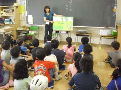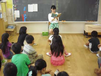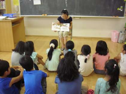 今朝の読み聞かせの様子です。今日も保護者の方がボランティアで読み聞かせをしてくださっています。絵を提示しないお話の読み聞かせは、言葉から想像する力を育てます。絵の提示のあるお話は、絵のイメージを自分の中でさらに広げていきます。短時間ですが子どもたちの様々な部分に働きかけることができます。