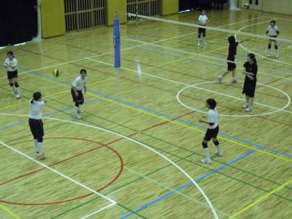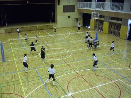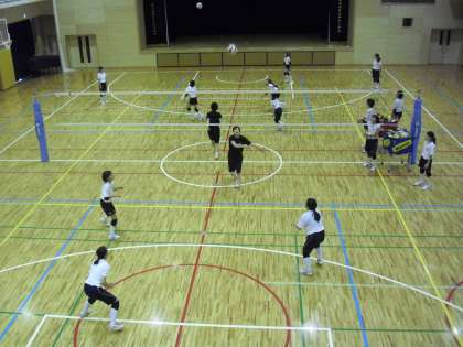 小学校の体育館では、午前中、女子バレーボール部が練習を行いました。2名のコーチに強弱を付けたボールを打ってもらい、レシーブの練習をしているところです。中学生の元気な声が聞こえてきます。
