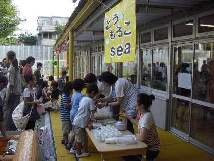 芦花小の子どもたちも訪れていました。トウモロコシのお店に並んでいました。浴衣を着た女の子たちも着ていました。芦花小中学校は、八幡山保育園とも連携を進めていきたいと思います。