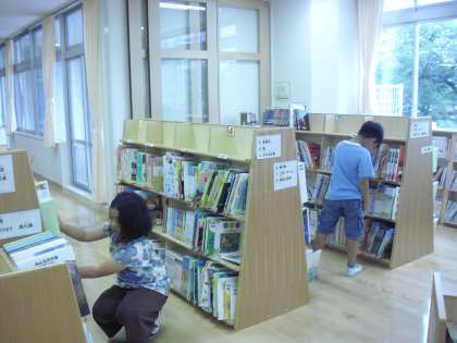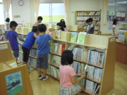 3年生の図書の時間の様子です。夏休みに借りる本を選んでいるところです。新しい図書室の使い方にもすっかり慣れたようで、どの分野の本がどこにあるのか、子どもたちも分かっているようです。