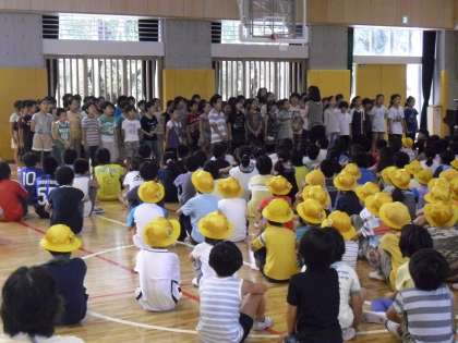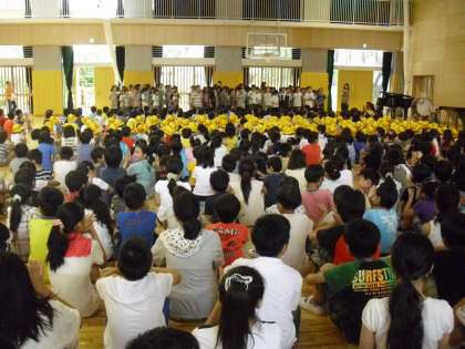 音楽朝会では、4年生が歌の発表をしました。「白い雲」「気球に乗ってどこまでも」の2曲をアカペラで歌いました。高音がとても伸びやかできれいです。この日のために練習してきた成果を発揮することができ、体育館は大きな拍手に包まれました。