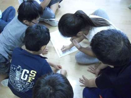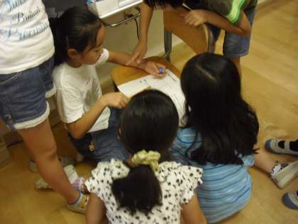 3年生の学級活動の時間の様子です。9月のこどもまつりにむけてグループ毎に話合い活動をしているところです。初めてお店を出す3年生。どんなお店にしようかとアイデアを出し合って盛り上がっています。とても楽しみな様子です。