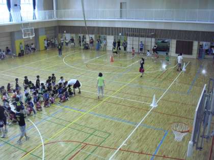 最後は参加児童全員によるリレーです。子どもたちは力いっぱい走りました。大いに盛り上がり、2回行いました。わずか1時間でしたが、参加した子どもたちは様々な運動を体験しました。運動の楽しさ体験ができました。校庭整備中ですが、子どもたちの体力づくりのためにこれからも様々な取り組みを行っていきます。