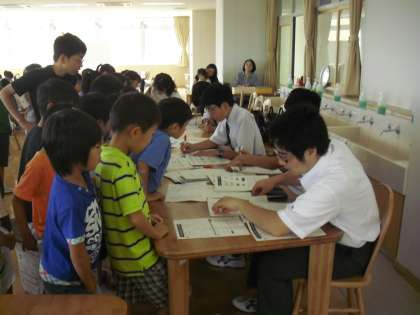 できあがったプリントは担当の教員が採点をしますが、昨年度に引き続き芦花中学校の男子生徒が手伝いに来てくれました。また、芦花小中の卒業生でもある都立高校の女子生徒も参加してくれました。中高生のお兄さんお姉さんとかかわり合いながら、算数の学習に取り組みました。