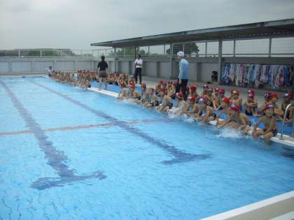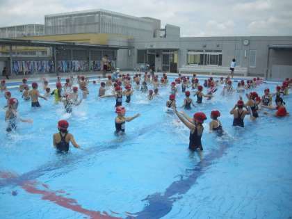 今日から始まった水泳教室の様子です。すべてのクラスを実施しました。水泳教室は体育の学習と違って、泳力を伸ばすことに重点を置いています。自分の立てた目標に向かってがんばってほしいです。