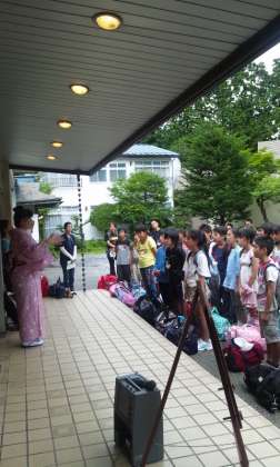 宿舎の方々がバスの到着を手を振りながら歓迎してくれました。