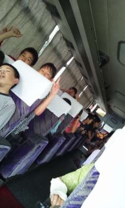 バスの中は寝ている人、元気な人いろいろです。今のところ予定通りの時刻に到着予定です。