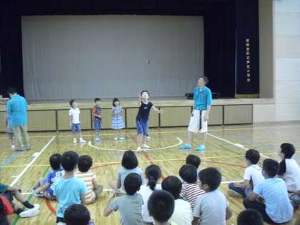 最後は、製菓発表会です。全員が取り組んだ技やできるようになった技をみんなの前で発表しました。講師の先生にも手伝ってもらいながらはじめてやった子どもたちも発表することができました。ヨーヨーの楽しさに触れることができました。