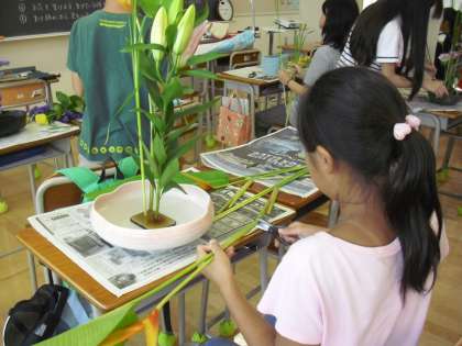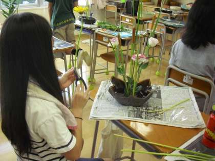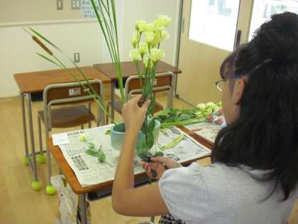 子どもたちは考えながら一本一本の花を扱っています。真剣に自分の作品に取り組んでいることが伝わってきます。静かな雰囲気の中で作業が進みました。