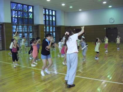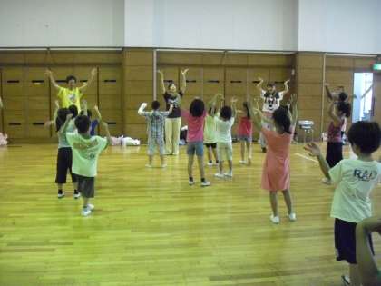 みんなで自由に動き回っておどることもしました。最後は世界の国をイメージしたダンスを一つずつ覚えていきました。