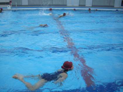5・6年生の水泳教室の様子です。課題別コースに分かれて練習しているところです。高学年は目標とするところがはっきりしているので、黙々と泳ぎこみます。来週の検定に向けてがんばっています。
