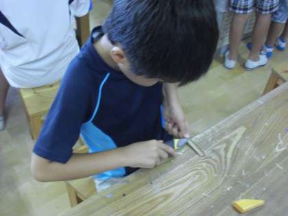 ある程度削ったら、講師の先生に見てもらってアドバイスをもらい、再び削っていきます。削り過ぎないように、削った面の厚さを確認しながら作業を進めます。