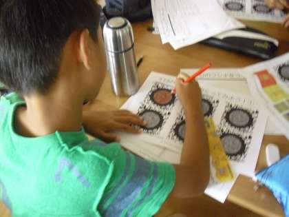 三谷先生は、じっと考え込まないで、分からなかったら動いてみようがモットーです。科学教室には必ず子どもたちの活動があります。自分自身でワークシートに自分で色を付けて動かしてみます。