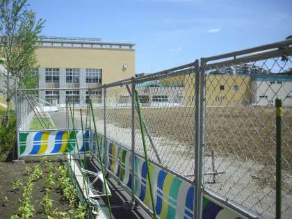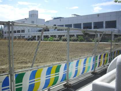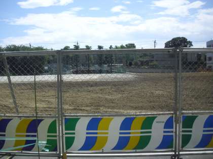 校庭整備等の工事も今日からお盆休みに入りました。これまで校庭と校舎の間に立っていたフェンスも、先が見通せる形の網目状のものになりました。職員室からでも工事の様子を見ることができます。今日は暑さが戻ってきました。