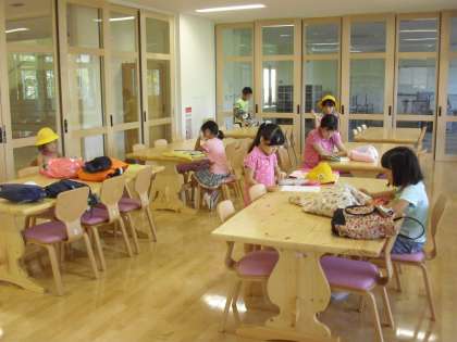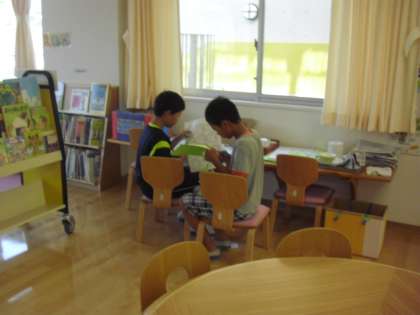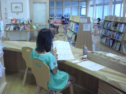今日は、夏休み最後の図書室開放日です。借りた本を返却したり、新しい本を借りに子どもたちが利用しています。担当の図書委員会の子どもたちは、2学期の活動に向けての準備も並行して行っています。