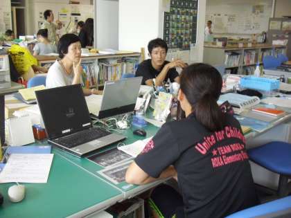 各学年が打ち合わせをしているところです。夏休み中も、2学期に向けての準備をしてきましたが、今日は、午前中は職員会議、小中合同職員会議、そして午後は学年会を行い、学習や行事等についての確認をしました。いよいよ2学期が始まります。