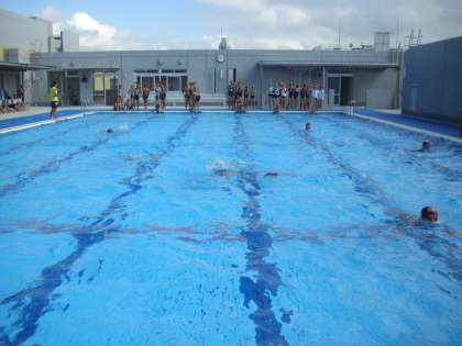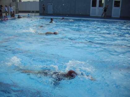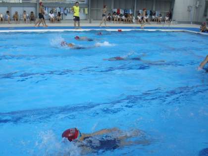 6年生の体育の授業の様子です。来週に行われる水泳記録会に向けて、自分たちがエントリーする種目を泳ぎ込んでいるところです。ただくり返して泳ぐのではなく、これまで学習してきた大きなストロークや伸びを意識して取り組んでいます。