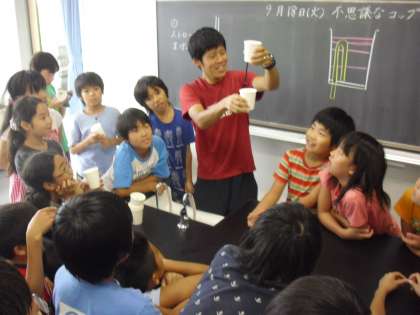 シャトル使ってゲームを楽しむバトミントンクラブ、不思議なコップの実験に取り組む科学クラブです。クラブ活動は、学年をこえて共通の興味や関心を追求する活動に取り組んでいます。