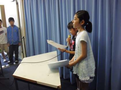 代表委員会による「こどもまつり」の開会式の様子です。テレビ放送で行いました。楽しく過ごすための約束ごとなどをみんなで確認しました。アイデアいっぱいの手作りのお店が並ぶ、こどもまつりのスタートです。