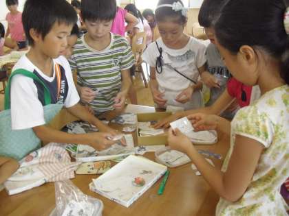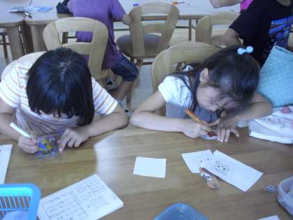 多目的室では、4年生と5年生がプラバンのお店を開いています。たくさんのお客さんがきていました。