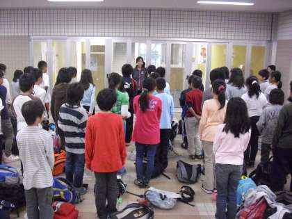 5年生を乗せたバスが川場から帰ってきました。昇降口での帰校式の様子です。2泊3日の宿泊生活で、絆を深めてきた5年生。代表児童の言葉からも充実した3日間を過ごすことができたことが伝わってきました。