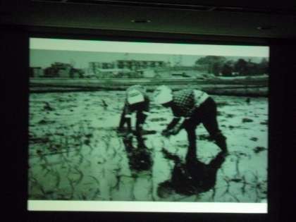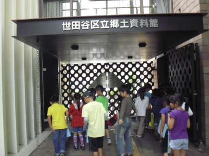 最後の見学場所である世田谷郷土資料館に着きました。ホールで芦花小学校のある粕谷の昔の様子をスライドで見ることができました。ガスタンクができた頃の様子や環八の周辺が田んぼだったことを知りました。