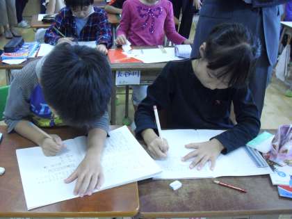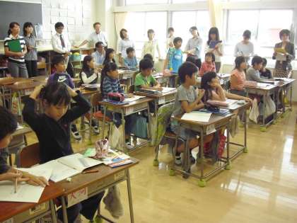 5時間目に行った研究授業の様子です。本校では、「どの子にも分かる喜びを味わわせる授業の工夫〜仲間とともに高め合う算数」をテーマに研究に取り組んでいます。今回は、3年生の「小数の足し算」を取り上げました。
