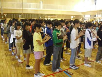 6年生が、ソプラノリコーダー、アルトリコーダーで「大きな古時計」の演奏を聴かせてくれました。最後は、器楽委員会の伴奏に6年生のリコーダーを加えて、歌いました。さわやかな時間を過ごすことができました。