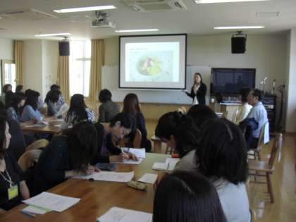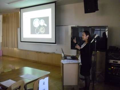 多目的室で行った第2回家庭教育学級の様子です。今回は栄養教諭であり料理研究家でもある講師の先生をお招きし「脳力を育てるレシピとは」をテーマにお話しいただきました。学校給食についての話から、体温の上昇と脳の活動の関係、脳の働きをよくする栄養、朝ごはんの大切さからレシピまで、興味深いお話ばかりでした。今後の生活に生かせるところがたくさんありました。