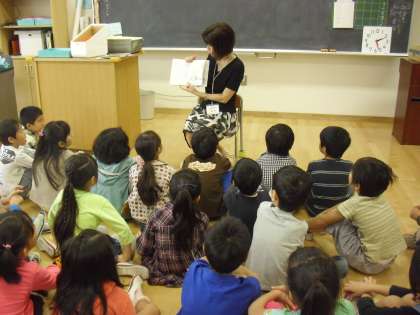 今朝の読み聞かせの様子です。今日も保護者のボランティアの方々が読み聞かせをしてくださいました。子どもたちの楽しみな時間です。たくさんのお話や保護者の方とのふれあいを大切にしています。渡部校長も読み聞かせを通して子どもたちとふれあいました。