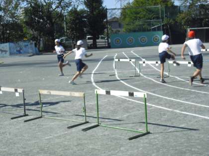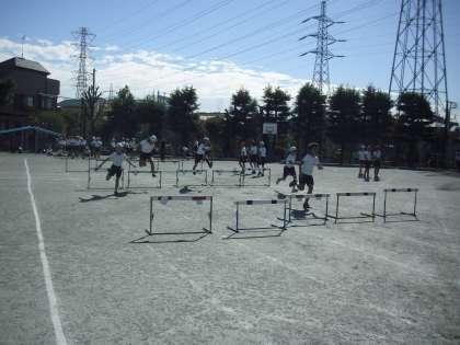 6年生の体育の授業の様子です。武蔵丘小学校のご厚意により、校庭をお借りして連合運動会に向けて練習しています。今日でお借りするのは4回目です。長い直線距離を思い切り走ることができました。ハードル走も行いました。貴重な練習時間です。