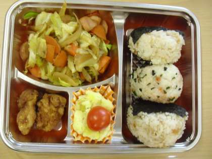 どのお弁当も子どもたちの創意工夫にあふれています。おにぎりの具にも工夫がありました。味付けもよくできていておいしい料理ばかりです。