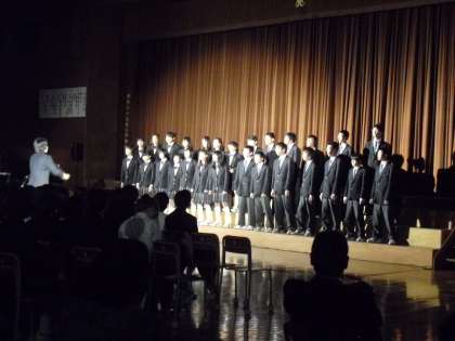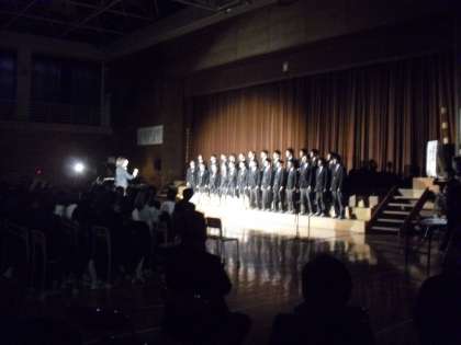中学校で行った学芸発表会、午後の部の2年生合唱発表の様子です。1クラスが共通の課題曲「時の旅人」と自由曲の2曲を歌います。自由曲は、2年B組が「はじまり」、2年A組が「遠い日の歌」、2年C組が「未来」を歌いました。どのクラスも練習を重ねた成果が発揮でき、集団としてのまとまりを感じました。