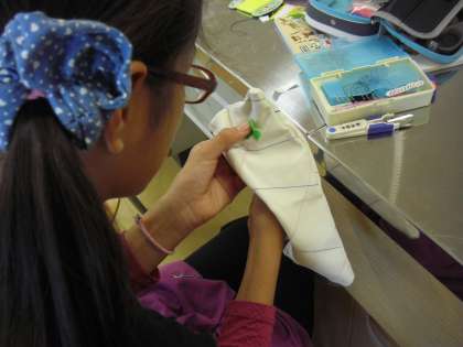 5年生の家庭科の授業の様子です。小物入れの製作に取り組んでいるところです。ミシンの扱いにも慣れてきた5年生。よりよく仕上げようと丁寧に作業を進めています。アップリケのワンポイントなど工夫も見られます。