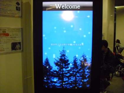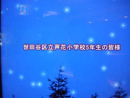 5年生の社会科見学の様子です。午前中は、川崎市にある「東芝科学館」で学習しました。入口に入るとインフォメーションのディスプレイがあり、芦花小学校の名前がテロップで流れていました。