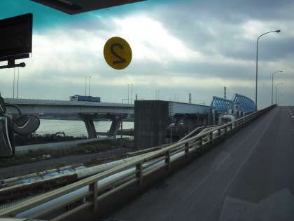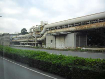 巨大なパイプが施設内全体を通っています。緑が多く、環境対策にも力を注いでいます。施設内には東京湾岸道路も走っています。時折、鉄を運ぶ大きなトラックも見かけました。