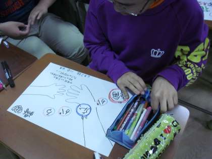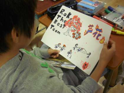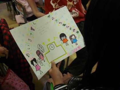 6年生の国語の授業の様子です。各自が考える芦花小のよさをポスターで表現しているところです。あいさつができること、中学校との連携、新しい校舎、おいしい給食etc、たくさんのよさをポスターに描きました。