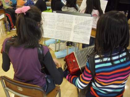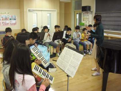 5年生の音楽の授業の様子です。「キリマンジャロ」の合奏に取り組んでいるところです。式典の歌の練習があったので、久しぶりの練習となりました。思い出すようにゆっくりとしたリズムで合奏しました。