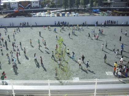 初めて新しい校庭で過ごす休み時間の様子です。子どもたちもこの日を楽しみにしていました。久しぶりに校庭に子どもたちの声が響きます。まだ、校庭の表面は柔らかく、固まるまで約2ヶ月ほどかかるそうです。みんなで気を付けながら大事に使っていきたいと思います。