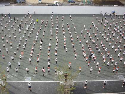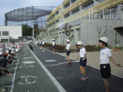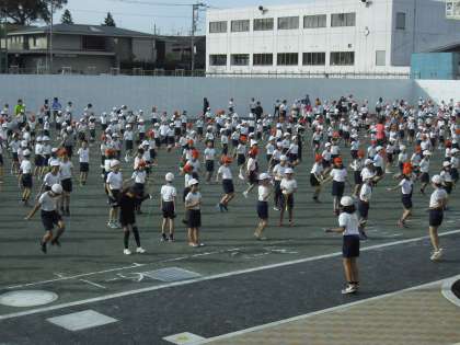 今朝の体育朝会の様子です。今日から「なわとび月間」が始まりました。運動委員会による短なわ跳びの扱い方、跳び方の紹介がありました。全校児童も運動委員会の見本と同じ跳び方にチャレンジです。
