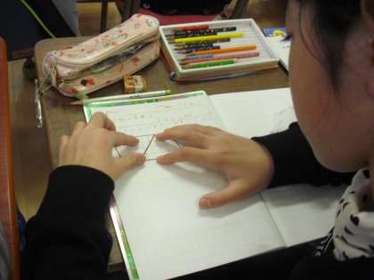 5年生の算数の授業の様子です。図形の面積を学習しているところです。台形の面積の公式の意味について、図形を様々な角度から見つめ、その根拠について考えました。暗記するのではなく、その意味を理解することが重要です。
