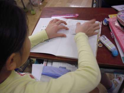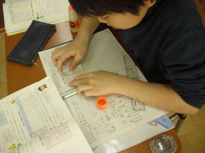 4年生の算数の授業の様子です。目的に応じて数を調べたり、集めたりするとき表を活用するとわかりやすいことを学習しているところです。授業で使用した表はノートに貼って、いつでも振り返りができるようにしています。