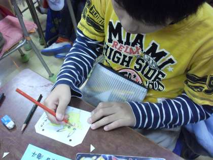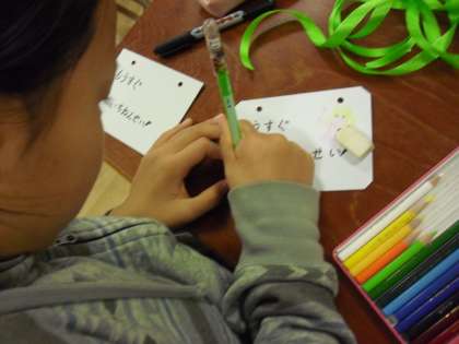 5年生の特別活動の授業の様子です。就学時健診の際に、来年度の1年生が受付で着ける番号札を作っているところです。新1年生が喜ぶようにと、イラストを描いたり、歓迎のことばを書いたりしました。自分たちが迎え入れる1年生の入学を心待ちにしているようです。