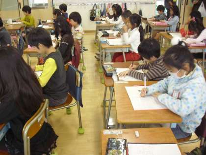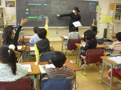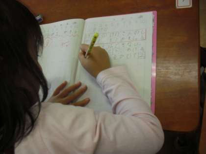 1年生の算数の授業の様子です。ひき算を学習しているところです。全員で課題の問題に取り組み、ひき算の意味について理解していきます。ノートも丁寧に書く習慣が身に付くように指導しています。