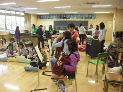 講師の先生に指導を受けながら対局を楽しむ囲碁・将棋クラブ、消しゴムで作ったスタンプなど思い思いの作品作りに取り組む図工クラブ、合奏の練習をする音楽クラブの様子です。