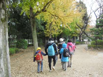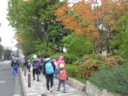 井の頭線の東松原駅から歩いて数分で羽根木公園に到着しました。公園沿いの道を歩いていきます。紅葉がきれいです。