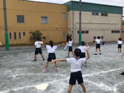 「投げる、打つ、とる、走る」の中で、「投げる」について学習しました。